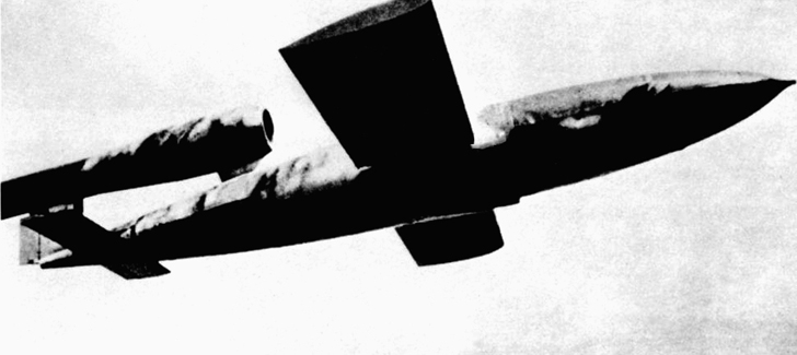 Worst of all was the terrifying suddenness with which it struck. They couldn’t see it coming. They couldn’t even hear it – until too late. Without warning, the ground trembled as if from a local earthquake and a roaring blast beat on their ear drums, followed by an eerie, rumbling “whoosh”. Most of the people were knocked flat but those close to the explosion were killed or mangled. Twisted fragments of metal littered the area and when the dazed survivors stumbled to the wreckage they found a deep crater, perhaps 30 feet in diameter, from which protruded the finned tail of a curious cylindrical missile the size of a small airplane fuselage.